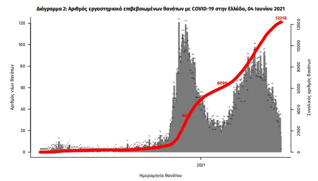 Οι νέοι θάνατοι ασθενών με COVID-19 είναι 34, ενώ από την έναρξη της επιδημίας έχουν καταγραφεί συνολικά 12.218 θάνατοι. Το 95.1% είχε υποκείμενο νόσημα ή/και ηλικία 70 ετών και άνω.