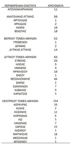 - Κεντρικός Τομέας Αθηνών: 154 κρούσματα