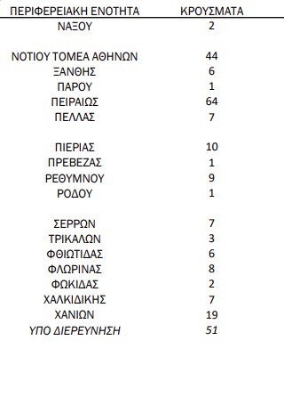 - Βόρειος Τομέας Αθηνών: 52 κρούσματα