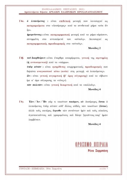 Παρακάτω μπορείτε να δείτε προτεινόμενα θέματα και τις απαντήσεις για το μάθημα των Αρχαίων Κατεθυνσης.