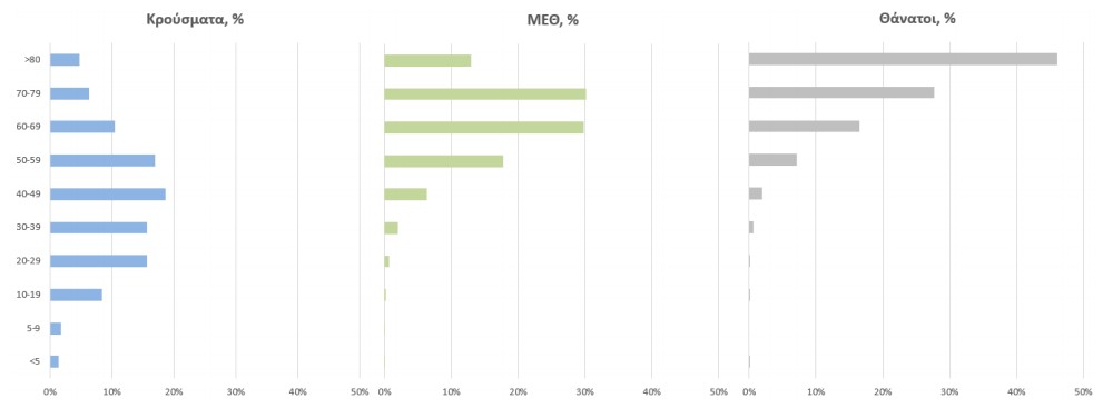 Η διάμεση ηλικία των κρουσμάτων είναι 43 έτη (εύρος 0.2 έως 106 έτη), ενώ η διάμεση ηλικία των θανόντων είναι 78 έτη (εύρος 0.2 έως 106 έτη).