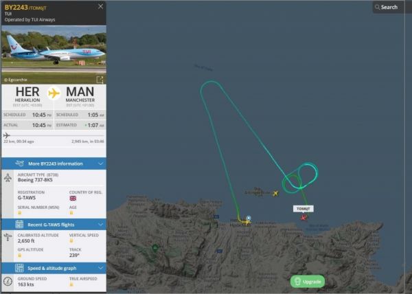 Η πτήση ήταν προγραμματισμένη να αναχωρήσει από το Ηράκλειο στις 10.45 μ.μ και να αφιχθεί στο αεροδρόμιο του Μάντσεστερ στη Βρετανία στη 1.05 π.μ., όμως αυτό δεν κατέστη εφικτό λόγω της βλάβης που παρουσίασε.