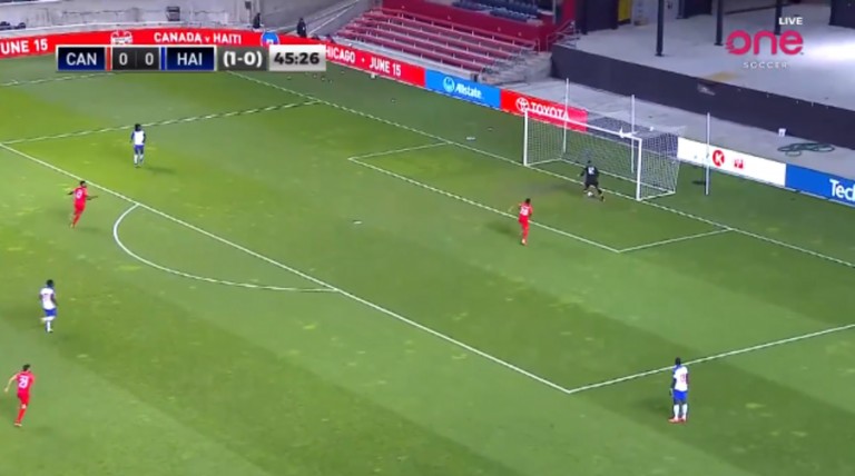 One of the worst concessions in goalkeeping history, and #CanMNT take a 1-0 lead over Haiti