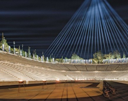 Από νωρίς, σήμερα το πρωί, συνεργεία ετοιμάζουν το χώρο, το φωτισμό και τη διάταξη των θέσεων για τους προσκεκλημένους. Στην κορυφή του Παναθηναϊκού Σταδίου έχουν τοποθετηθεί δημιουργίες με τα σχέδια του οίκου στα χρώματα της Ελλάδας.