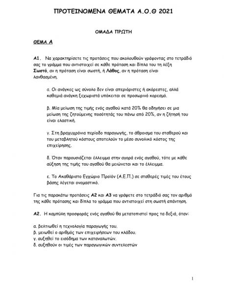 Παρακάτω μπορείτε να δείτε προτεινόμενα θέματα και τις απαντήσεις για το μάθημα ΑΟΘ για ΓΕΛ.