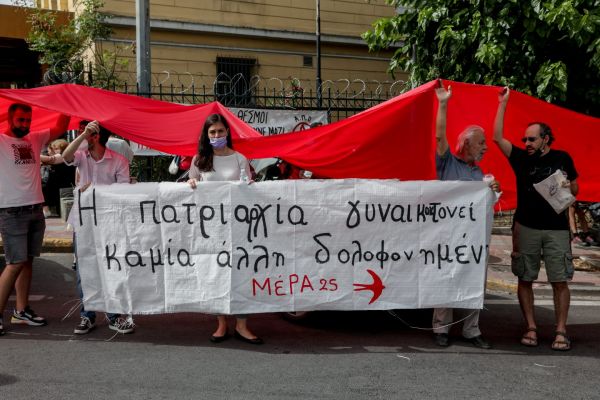 Κρατώντας πανό που γράφουν «όχι άλλη γυναικοκτονία» ο κόσμος έστειλε μηνύματα κατά της κακοποίησης των γυναικών, μετά το έγκλημα έχει συνταράξει το πανελλήνιο.