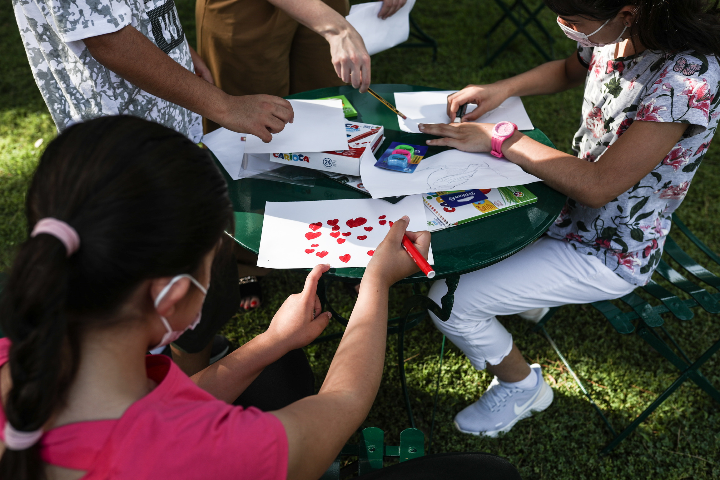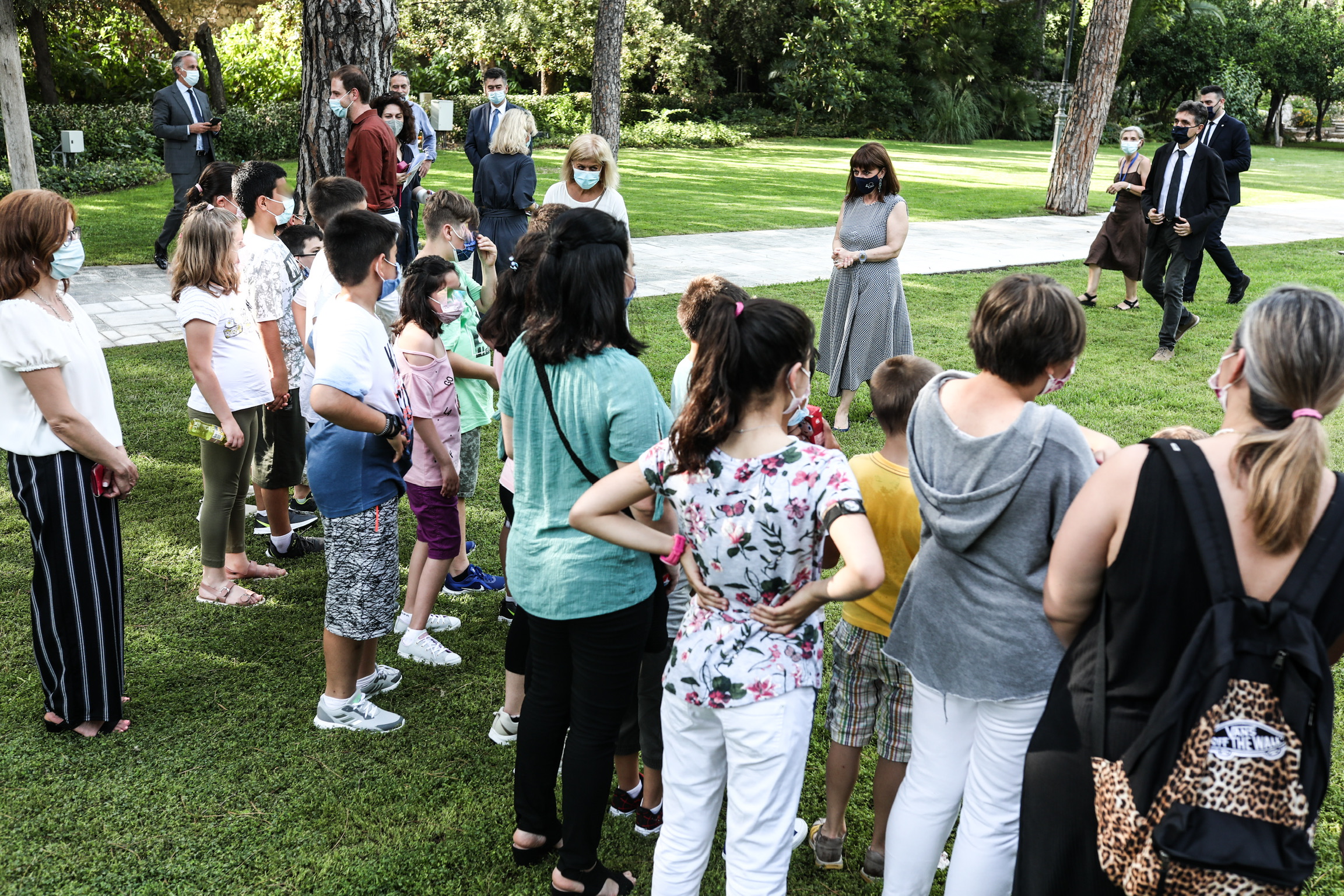 Ήταν τα 29 παιδιά από τη δομή παιδικής προστασίας «Παιδόπολη Αγιος Ανδρέας» που κάλεσε στο Προεδρικό η Πρόεδρος της Δημοκρατίας Κατερίνα Σακελλαροπούλου μαζί με την υφυπουργό Δόμνα Μιχαηλίδου. Σας πληροφορώ ότι λόγω των παιδιών το Προεδρικό Μέγαρο έγινε αγνώριστο. Πρώτα απ΄όλα στήθηκαν τραπέζια για δραστηριότητες (ζωγραφική χαρτοκοπτική κτλ.). Εν συνεχεία επειδή το ποδόσφαιρο ανοίγει την όρεξη η Πρόεδρος φρόντισε και τους είχε hot dog, burgers και έναν παγωτατζή που μοίραζε παγωτό βανίλια με σοκολάτα και φράουλα.