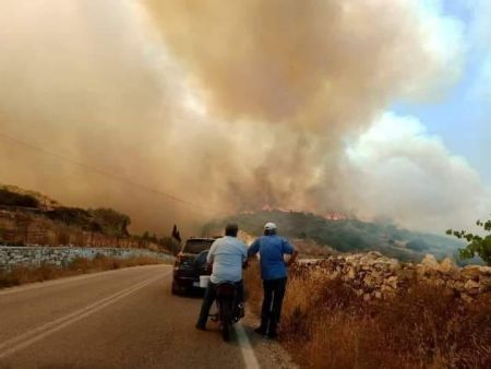 Σύμφωνα με την πυροσβεστική, λίγο μετά τις 19:00 χθες, η εικόνα της φωτιάς βελτιώθηκε, με διάσπαρτες εστίες χωρίς ενιαίο μέτωπο.