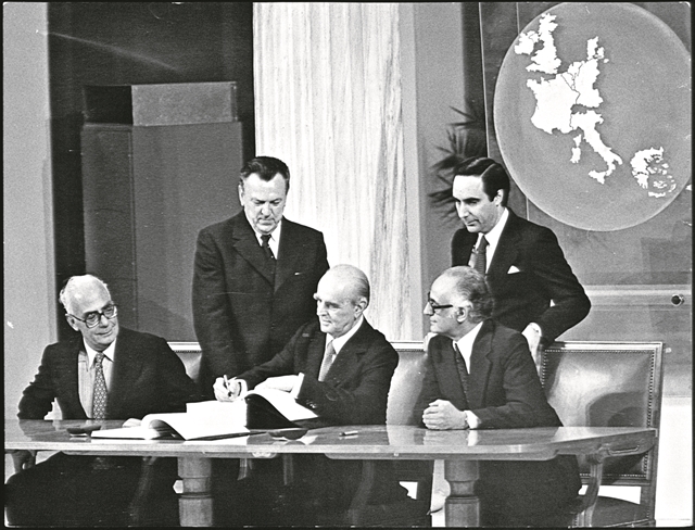 Στις 18 Απριλίου 1951, σχεδόν έναν χρόνο μετά την ανακοίνωση του Σουμάν, έξι χώρες (Βέλγιο, Γαλλία, Γερμανία, Ιταλία, Λουξεμβούργο, Ολλανδία) υπογράφουν τη Συνθήκη των Παρισίων για τη δημιουργία της Ευρωπαϊκής Κοινότητας Ανθρακα και Χάλυβα (ΕΚΑΧ). Εξι ευρωπαϊκά κράτη θα ξεκινήσουν μια εντελώς νέα μορφή διεθνούς συνεργασίας που θα στηρίζεται στη συνεκμετάλλευση του άνθρακα και του χάλυβα και θα εξασφαλίσει ειρήνη και ευημερία στα κράτη-μέλη της πρώτης Κοινότητας. Βασιζόμενες στο σχέδιο Σουμάν, οι έξι χώρες επέλεξαν να ενοποιήσουν τις βαριές βιομηχανίες τους κάτω από έναν κοινό συντονισμό. Το Ηνωμένο Βασίλειο αρνήθηκε να συμμετάσχει στην ΕΚΑΧ, προτιμώντας να παραμείνει έξω από την Κοινότητα. Ο λόγος: η αναγκαία παραχώρηση εθνικών κυριαρχικών δικαιωμάτων στην Κοινότητα.