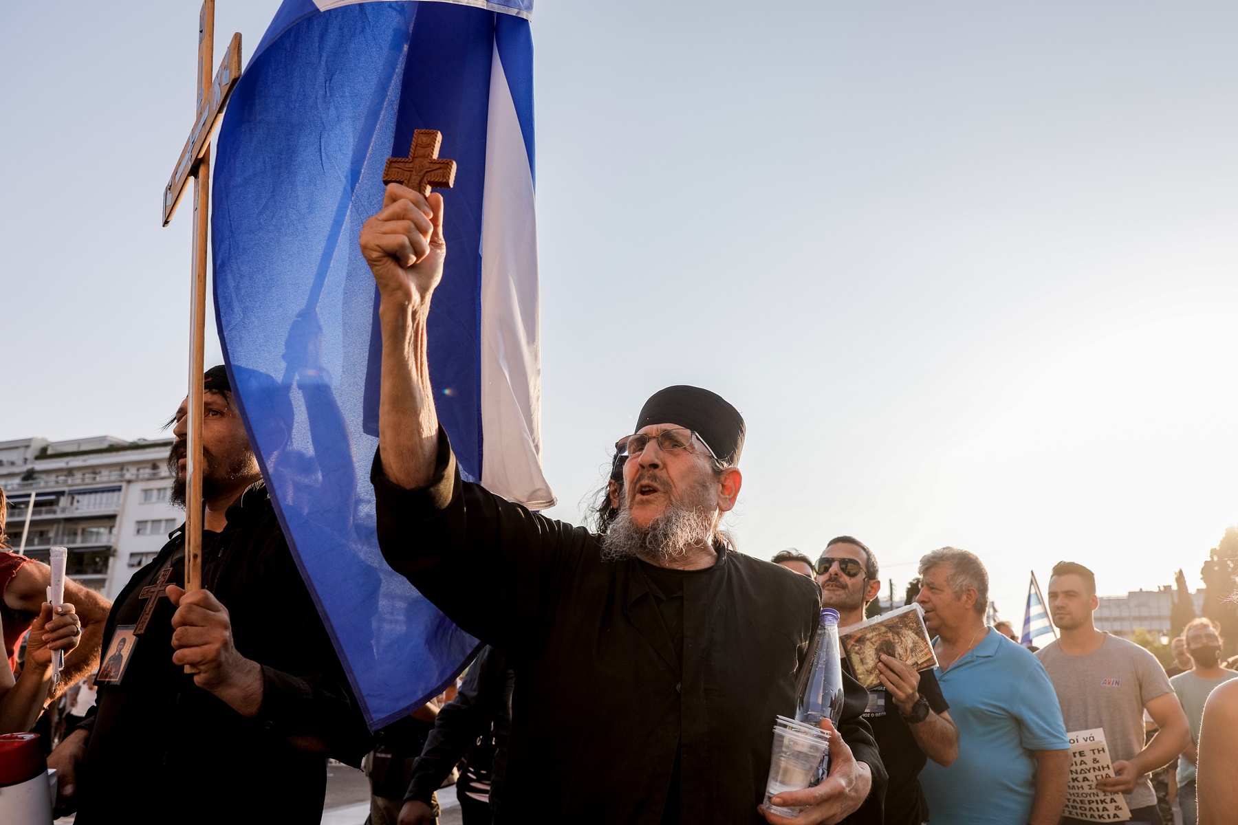 Anti-vaccine groups, extreme right ideologues, fanatical religious zealots including Old Calendar Orthodox Christians, outlandish conspiracy theorists who disseminate unfounded theories and see enemies everywhere, deniers of science and progress in general, and supporters of a fortress-Greece all together paraded in a demonstration on 14 July in Syntagma Square in Athens, literally obstructing the country’s effort to free itself from the bonds of the fierce and deadly COVID-19 epidemic.