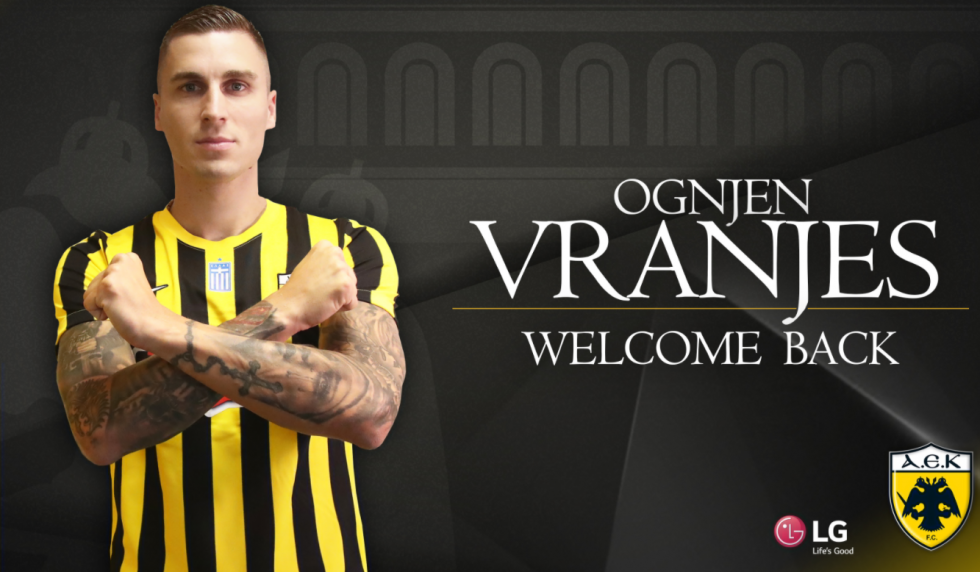 Η επιστροφή του Όγκνιεν Βράνιες στην ΑΕΚ επισημοποιήθηκε, με την κιτρινόμαυρη ΠΑΕ να ανακοινώνει την απόκτηση του.