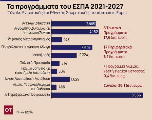 – «Περιβάλλον –Ενέργεια-Κλιματική Αλλαγή»: 3,607 δις. ευρώ.