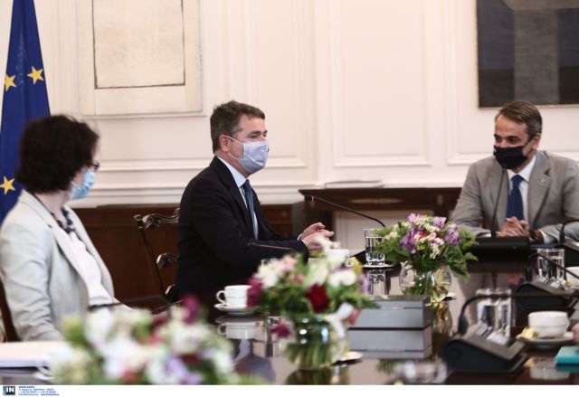 Ο Πρωθυπουργός Κυριάκος Μητσοτάκης συναντήθηκε το μεσημέρι στο Μέγαρο Μαξίμου με τον Πρόεδρο του Eurogroup και Υπουργό Οικονομικών της Ιρλανδίας Πασκάλ Ντόναχιου.