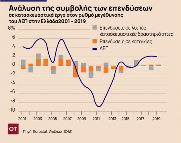 Οι επενδύσεις σε κατασκευές συνέβαλαν εκ νέου θετικά στην ανάκαμψη της ελληνικής οικονομίας το 2016, αλλά αυτή η θετική επίδραση δεν διατηρήθηκε τα επόμενα έτη μέχρι και το 2019.