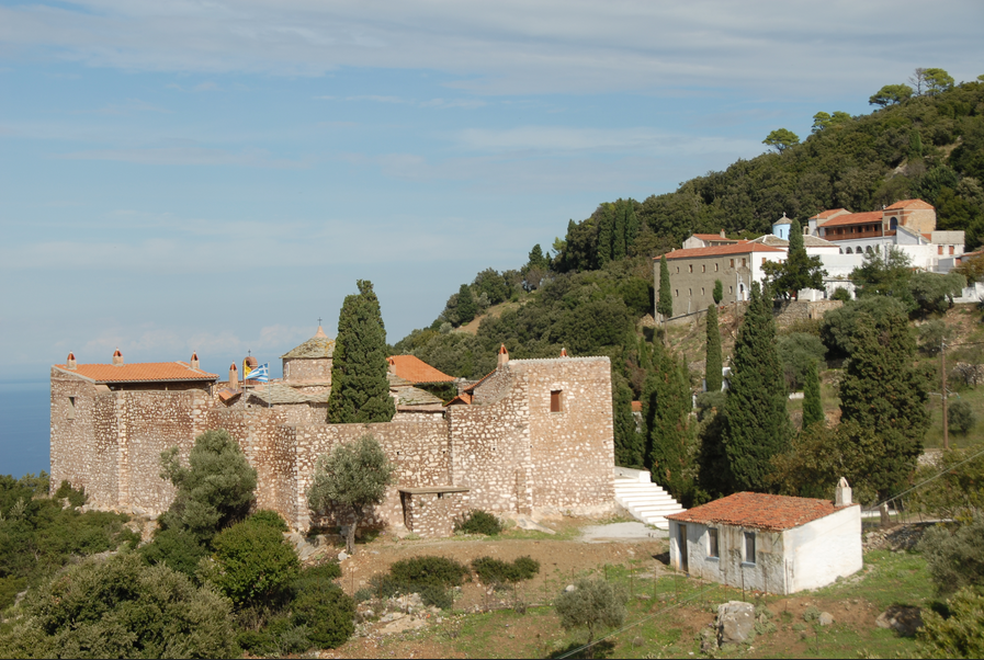 - Η μονή της Μεταμόρφωσης του Σωτήρα, σε ύψωμα με υπεραιωνόβια δέντρα. Η περιτειχισμένη μονή (τα κελιά της σχηματίζουν τείχος) ιδρύθηκε στα τέλη του 15ου-αρχές του 16ου αιώνα και έγινε σταυροπηγιακή το 1636. Το καθολικό της μονής, που αποτελεί μετόχι της μονής Ξενοφώντος του Αγίου Όρους, φέρει ξυλόγλυπτο τέμπλο με φυτική διακόσμηση. Η εικόνα της Μεταμόρφωσης του Σωτήρα στο τέμπλο είναι φιλοτεχνημένη από τον κρητικό αγιογράφο Aντώνιο Aγοραστό.