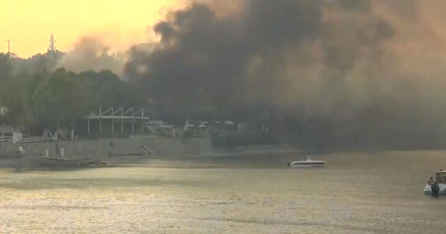 Σύμφωνα με πληροφορίες η φωτιά περνάει μέσα από το club Mediteranne στο Λαμπίρι, το οποίο καίγεται.