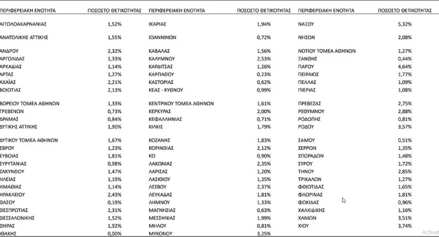 Ανησυχία προκαλούν και τα ποσοστά σε Χίο και Χανιά με 3,74% και 3,51% ενώ προβληματισμός εγείρεται και για το Ηράκλειο με 2,43%.
