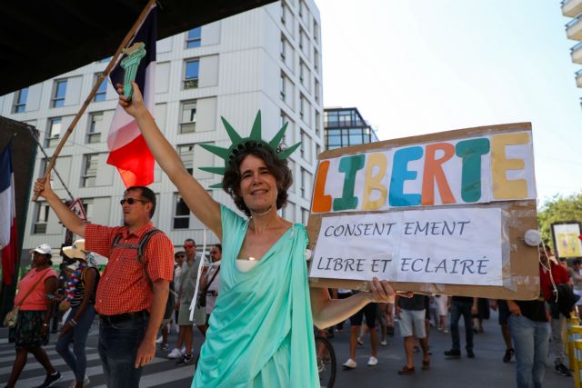 Με συνθήματα υπέρ της ελευθερίας και κατά του… άπαρτχαϊντ του υγειονομικού πάσου χιλιάδες Γάλλοι κατέβηκαν και πάλι σήμερα στους δρόμους, για πέμπτο συνεχόμενο Σαββατοκύριακο, προκειμένου να διαδηλώσουν ενάντια στα νέα μέτρα κατά της πανδημίας και ειδικότερα κατά του υγειονομικού πάσου.