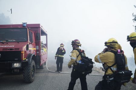 Έντεκα υδροφόρα πυροσβεστικά οχήματα με τα πληρώματά τους, ένα πεζοπόρο τμήμα, εθελοντές επιχειρούν συνεχώς, ενώ συνδράμει και η Αυτοδιοίκηση. Από νωρίς το πρωί, γίνεται και αεροπυρόσβεση με τη συνδρομή ενός ελικοπτέρου και ενός αεροπλάνου, τύπου πετζετέλ.