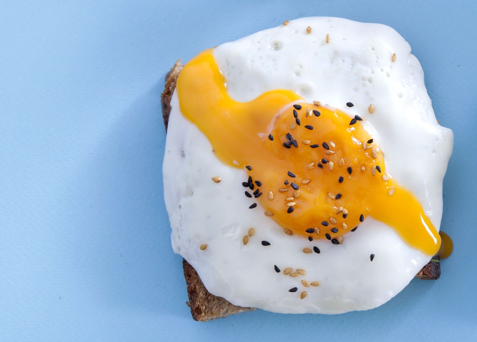 Σε ένα τηγάνι βάζουμε λίγο λάδι και τηγανίζουμε τα δύο αβγά. Αλείφουμε το αβοκάντο πάνω στο ψωμί. Πάνω σε κάθε φέτα βάζουμε 1 αβγό, πασπαλίζουμε με λίγο σουσάμι και προσθέτουμε αλατοπίπερο.