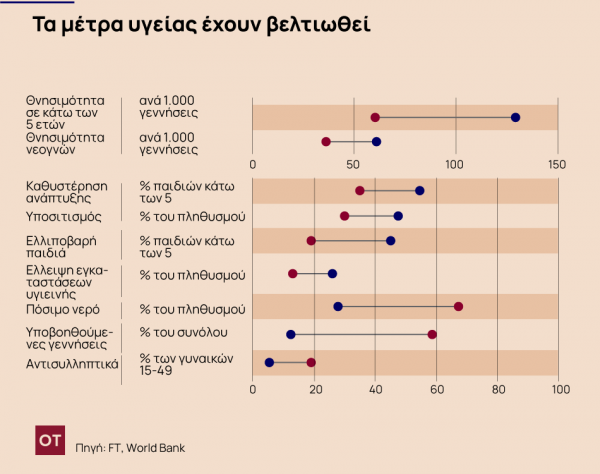 Περίπου 60 παιδιά ηλικίας κάτω των 5 ετών πέθαναν το 2019 ανά 1.000 γεννήσεις, σύμφωνα με την Παγκόσμια Τράπεζα -ο αριθμός αυτός έχει μειωθεί στο μισό από το τέλος του αιώνα, η ταχύτερη μείωση της παιδικής θνησιμότητας από όλες τις χώρες χαμηλού εισοδήματος.