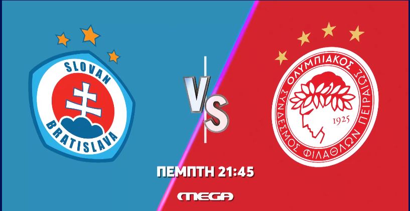 Η ρεβάνς του Ολυμπιακού με τη Σλόβαν Μπρατισλάβας για τα play off του UEFA Europa League θα μεταδοθεί ζωντανά από το MEGA απόψε στις 21:45.
