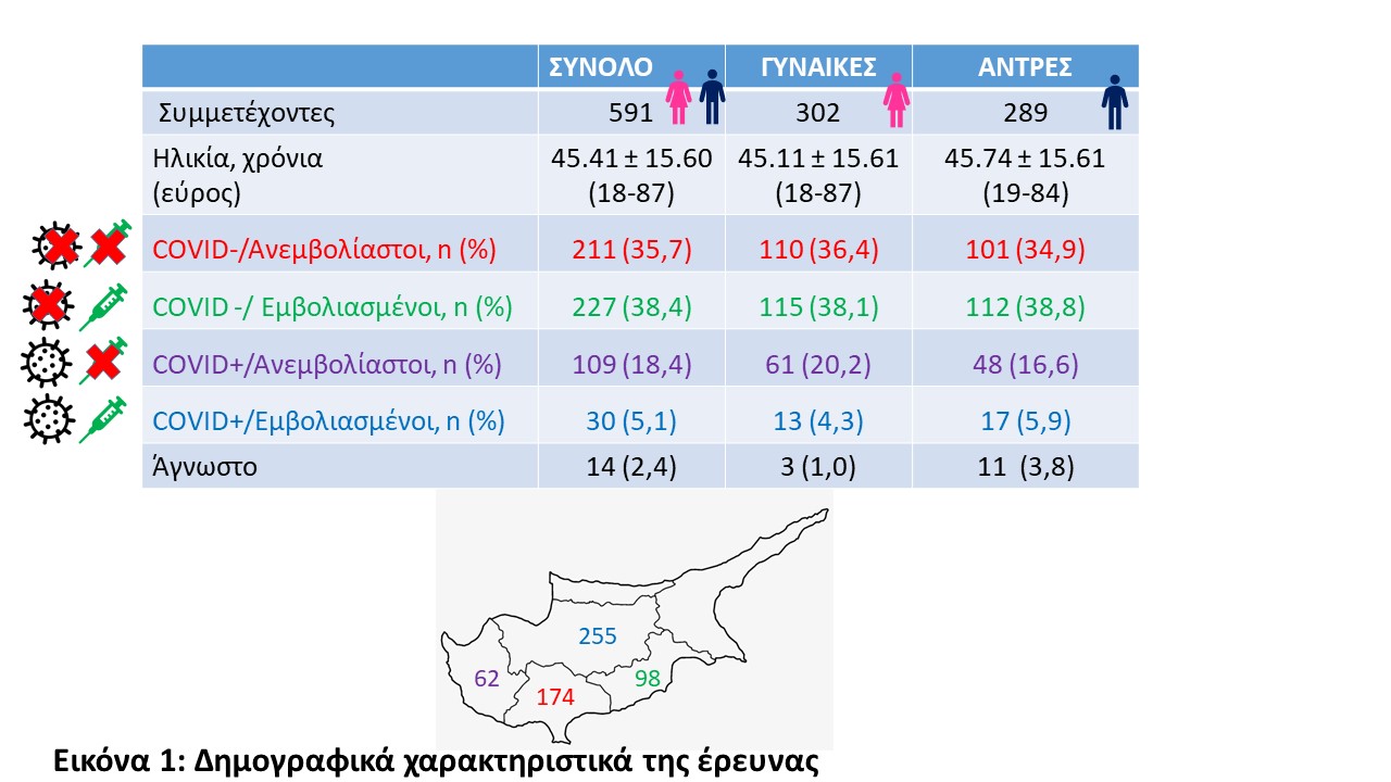 Ο πρώτος κύκλος της μελέτης συμπεριλαμβάνει 591 άτομα ηλικίας από 18 μέχρι 87 ετών από όλες τις πόλεις της Κύπρου, στα οποία συγκαταλέγονται (βλ. Εικόνα 1):