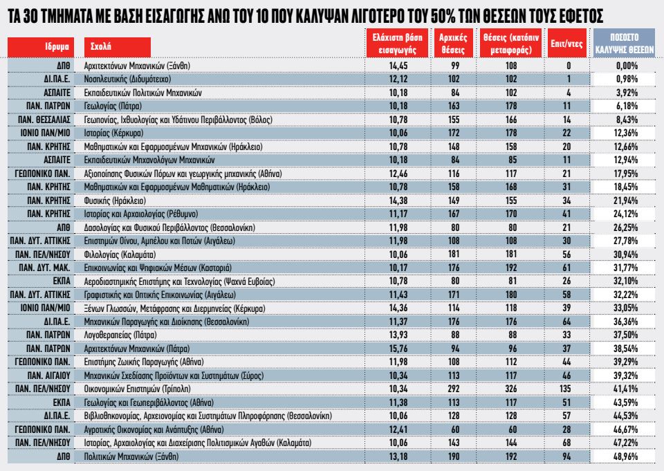 Οι σχολές με μηδέν εισακτέους και εκείνες που «έσπασαν τα κοντέρ»