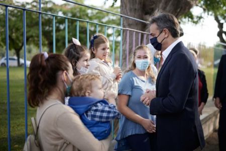 Επίσκεψη του πρωθυπουργού Κυριάκου Μητσοτάκη στο Δαμάσι Τυρνάβου όπου και παραβρέθηκε στον αγιασμό για την έναρξη της σχολικής χρονιάς στο Δημοτικό σχολείο Δαμασίου και στα Φάρσαλα, Δευτέρα 13 Σεπτεμβρίου 2021.
