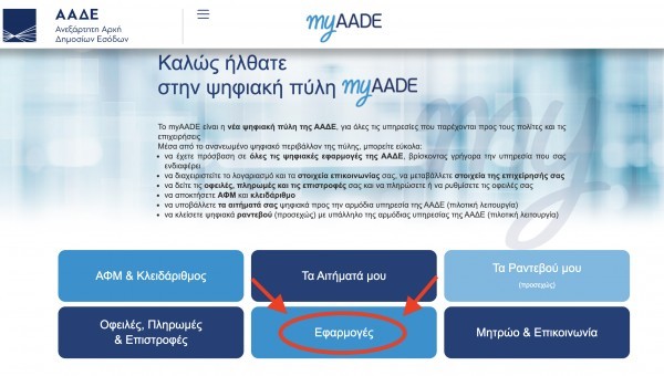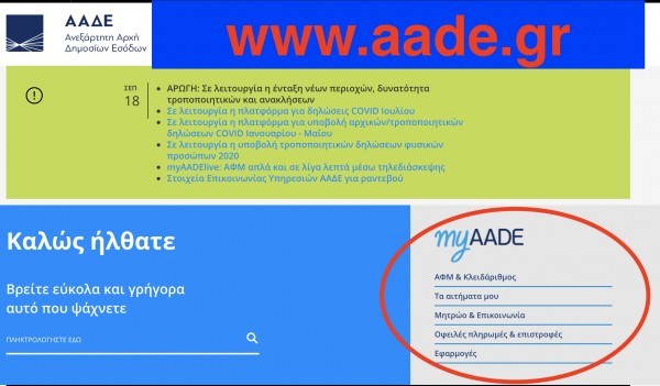 Πληκτρολογώντας κανείς το www.aade.gr θα βρεθεί σε ένα νέο περιβάλλον όπου στην πρώτη σελίδα όπως φαίνεται και από τις εικόνες που δημοσιεύει ο Οικονομικός Ταχυδρόμος θα πρέπει να πατήσει εκεί που γράφει myaade.