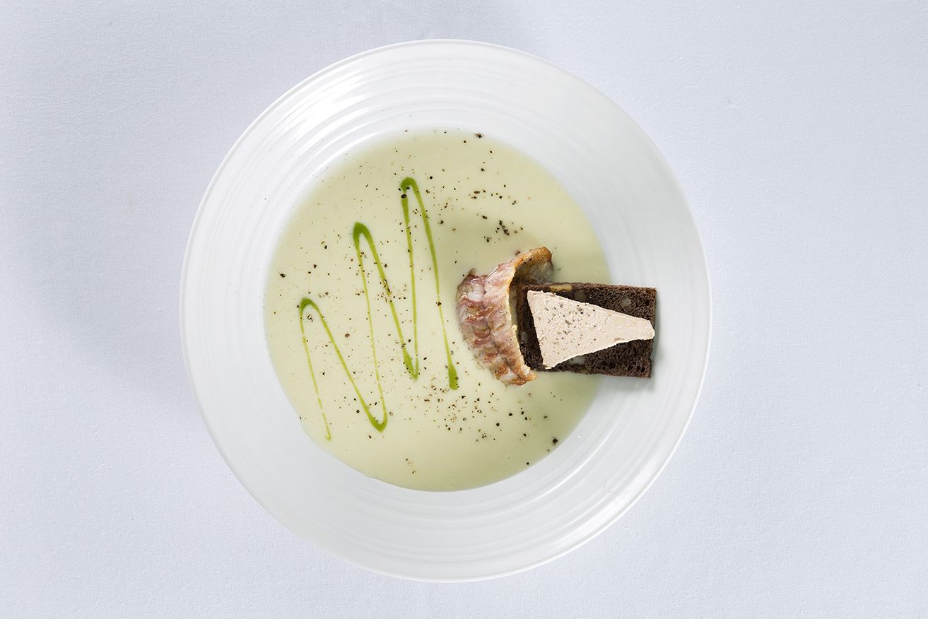 Σερβίρουμε βάζοντας στην άκρη κάθε πιάτου το χέλι και το ψωμί με το φουαγκρά, προσθέτοντας από πάνω λίγες σταγόνες ελαιόλαδο.