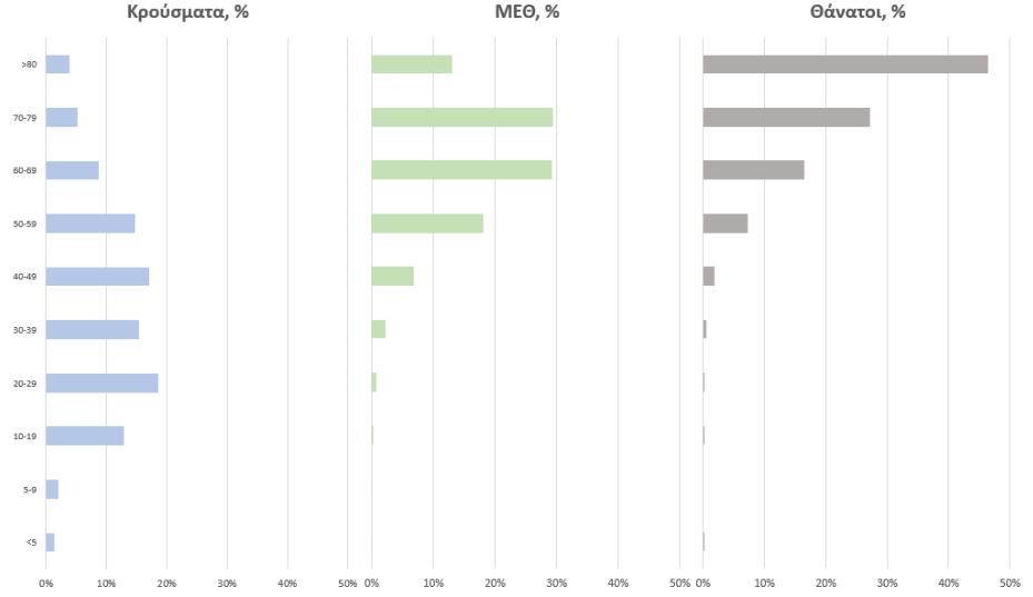 Η διάμεση ηλικία των κρουσμάτων είναι 39 έτη (εύρος 0.2 έως 106 έτη), ενώ η διάμεση ηλικία των θανόντων είναι 78 έτη (εύρος 0.2 έως 106 έτη).