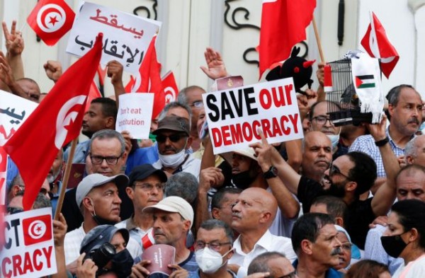 Οι διαδηλωτές θέλουν να ασκήσουν πιέσεις στον Τυνήσιο πρόεδρο προκειμένου να πάρει πίσω τα μέτρα που έλαβε και ξεκίνησαν τον Ιούνιο, όταν ανέστειλε τη λειτουργία του κοινοβουλίου και απομάκρυνε τον πρωθυπουργό, προτού διευρύνει περαιτέρω τις νομοθετικές και εκτελεστικές εξουσίες του και αναστείλει τμήματα του Συντάγματος αυτόν τον μήνα.