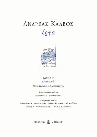 Με την κυκλοφορία του αδημοσίευτου ποιητικού έργου του Ανδρέα Κάλβου ολοκληρώθηκε η έκδοση του corpus του ποιητή των Ωδών, ένα φιλόδοξο πρόγραμμα του Μουσείου Μπενάκη που συγκέντρωσε από το 2014 σε έξι τόμους την αλληλογραφία και όλο το ιταλόγλωσσο και ελληνόγλωσσο έργο του συγγραφέα, ποιήματα, πεζά, θεατρικά έργα και ποικίλα κείμενα, συνοδευόμενους από έναν τόμο χρήσιμων ευρετηρίων.
