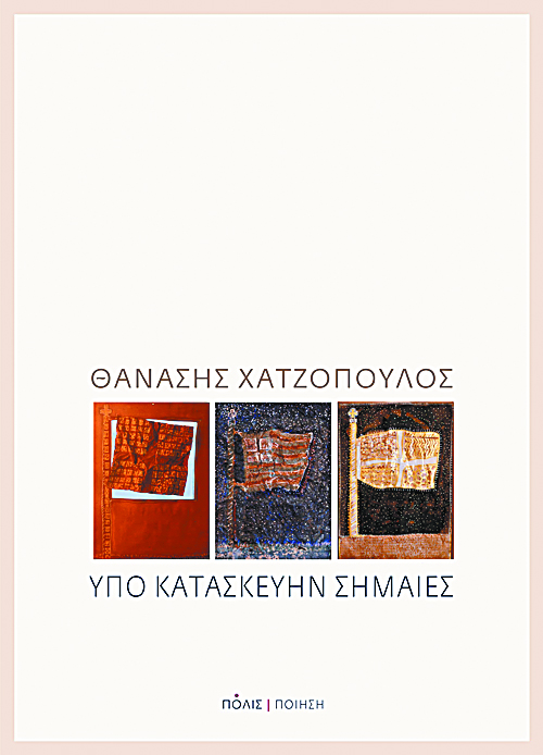 Με την τωρινή συλλογή του, τις Υπό κατασκευήν σημαίες, ο Χατζόπουλος, μεταβάλλοντας εκ νέου προσανατολισμό και κατεύθυνση, δοκιμάζει την ποιητική του τέχνη σε σχέση με μια άλλη πραγματικότητα: την ιστορική. Ο ποιητής επανέρχεται εδώ στην πολύστιχη σύνθεση, υιοθετώντας δύο πρωτοπρόσωπες αφηγήσεις, που αναθέτει στις φωνές του Κωνσταντίνου Παλαιολόγου και του Ρήγα Φεραίου, παρεμβάλλοντας μεταξύ τους μια σειρά επιμέρους εξιστορήσεων, οι οποίες μπορεί να εξακολουθούν είναι πρωτοπρόσωπες, αλλά αποτυπώνουν το προεπαναστατικό εμείς του 1821. Ο Χατζόπουλος θα μιλήσει τώρα για την πτώση και τον αφανισμό (με όχημα το προσωπείο του Παλαιολόγου), για τον άοκνο αγώνα, τις διαρκείς θυσίες και το αλόγιστο αίμα του (οι ενδιάμεσες διηγήσεις μιας αλυσίδας αφανών ηρώων), αλλά και για την πίστη στην ελευθερία με αντίτιμο τον θάνατο (το προσωπείο του Ρήγα, τώρα με λίγους και σύντομους πλην εξαιρετικά περιεκτικούς στίχους). Και κοντά σε όλα αυτά, η δύναμη και το αναπεπταμένο πεδίο της γλώσσας, που μπορεί και πάλι να συστήσει μια καινούργια συλλογικότητα, σκαλίζοντας μέσα στα αποκαΐδια και στις σορούς των νεκρών και ανασύροντας διαμάντια εσαεί μέσα από έναν αδιάκοπο χορό ονομάτων και πολλαπλών επικλήσεων.