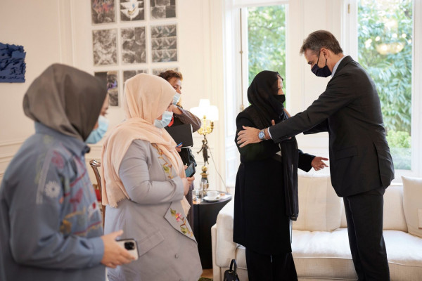 Ο Πρωθυπουργός Κυριάκος Μητσοτάκης υποδέχθηκε το απόγευμα στο Μέγαρο Μαξίμου τρεις γυναίκες βουλευτές και τρεις γυναίκες δικαστικούς από το Αφγανιστάν οι οποίες απεγκλωβίστηκαν από τη χώρα τους και το καθεστώς των Ταλιμπάν και φιλοξενούνται σήμερα στην Ελλάδα.
