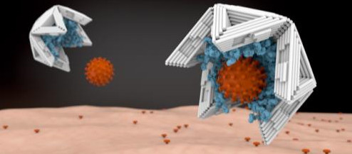 Επίσης, στο άρθρο αναφέρονται νανοσωματίδια πυριτίου τα οποία μπορούν και εγκλωβίζουν ιούς συνδεόμενα με αυτούς μέσω ‘ακίδων’ μεγέθους 5-10 nm τις οποίες φέρουν στην επιφάνεια τους και οι οποίες αναγνωρίζουν τα σημεία σύνδεσης με την επιφάνεια των ιών. Με αυτό τον τρόπο συνδέονται μαζί τους μέσω των γλυκοπρωτεϊνών που υπάρχουν στην επιφάνεια τους και δεν επιτρέπουν την μόλυνση των ανθρώπινων κυττάρων. Έτσι αναπτύσσονται οι λεγόμενες ‘βιομιμητικές’ νανοσυσκευές με ‘ακίδες’ που αποτελούνται από σάκχαρα με σιαλικό οξύ, αυξάνεται η συνδεσιμότητα τους με τον ιό και έτσι τον καταστρέφουν. Πειράματα in vitro εναντίον του ιού της γρίπης έδειξαν ενθαρρυντικά αποτελέσματα και οι ερευνητές πιστεύουν ότι θα έχουν θετικά αποτελέσματα και εναντίον τοι ιού SARS-CoV-2. Η ερευνητική αυτή δραστηριότητα χρηματοδοτείτε μαζί με άλλα ερευνητικά προγράμματα με συνολικό προϋπολογισμό 1.8 εκατομμύρια ευρώ.