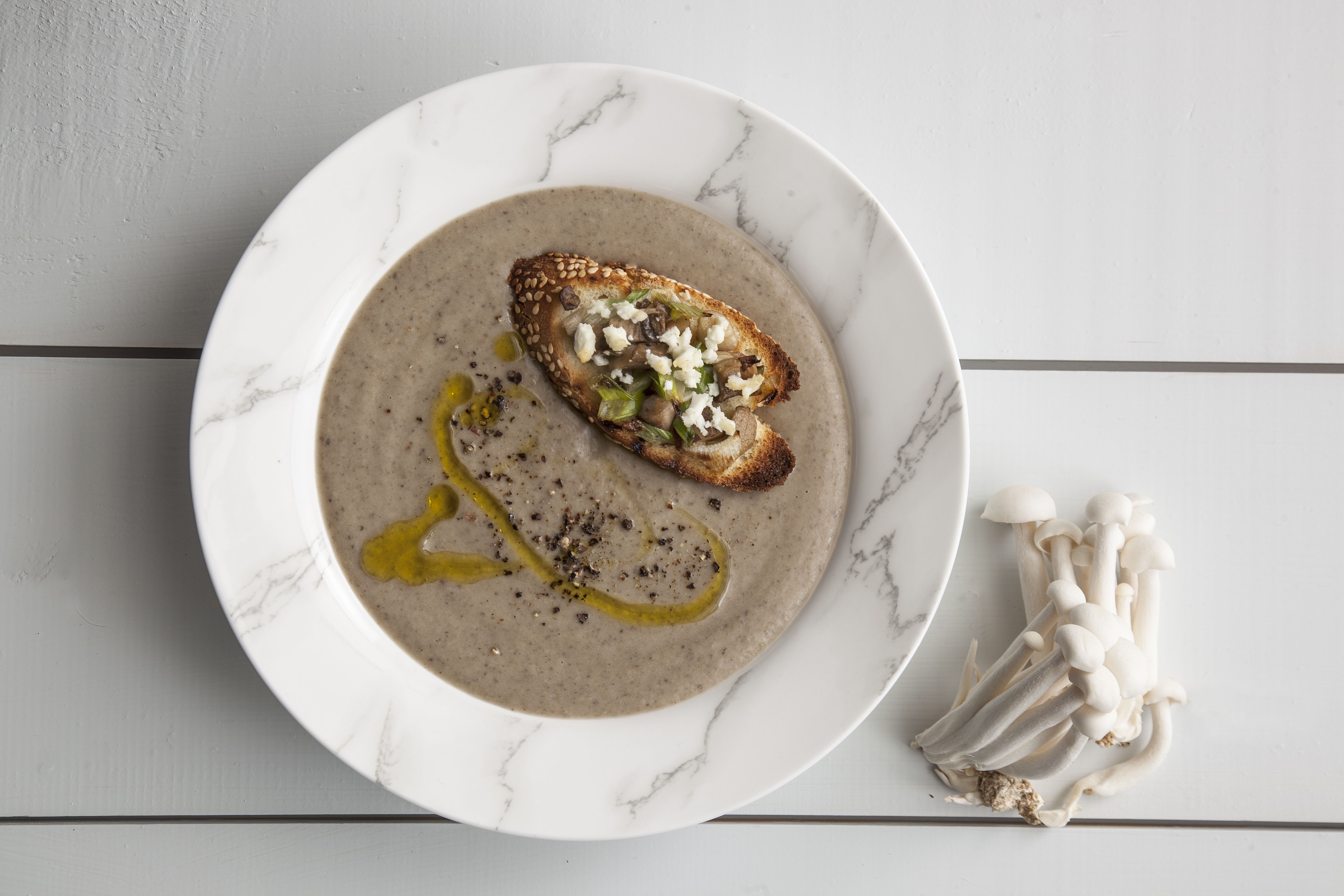 Σερβίρουμε τη σούπα βάζοντας δίπλα τις μπρουσκέτες. Πασπαλίζουμε με λίγες σταγόνες λάδι τρούφας και φρεσκοτριμμένο πιπέρι.