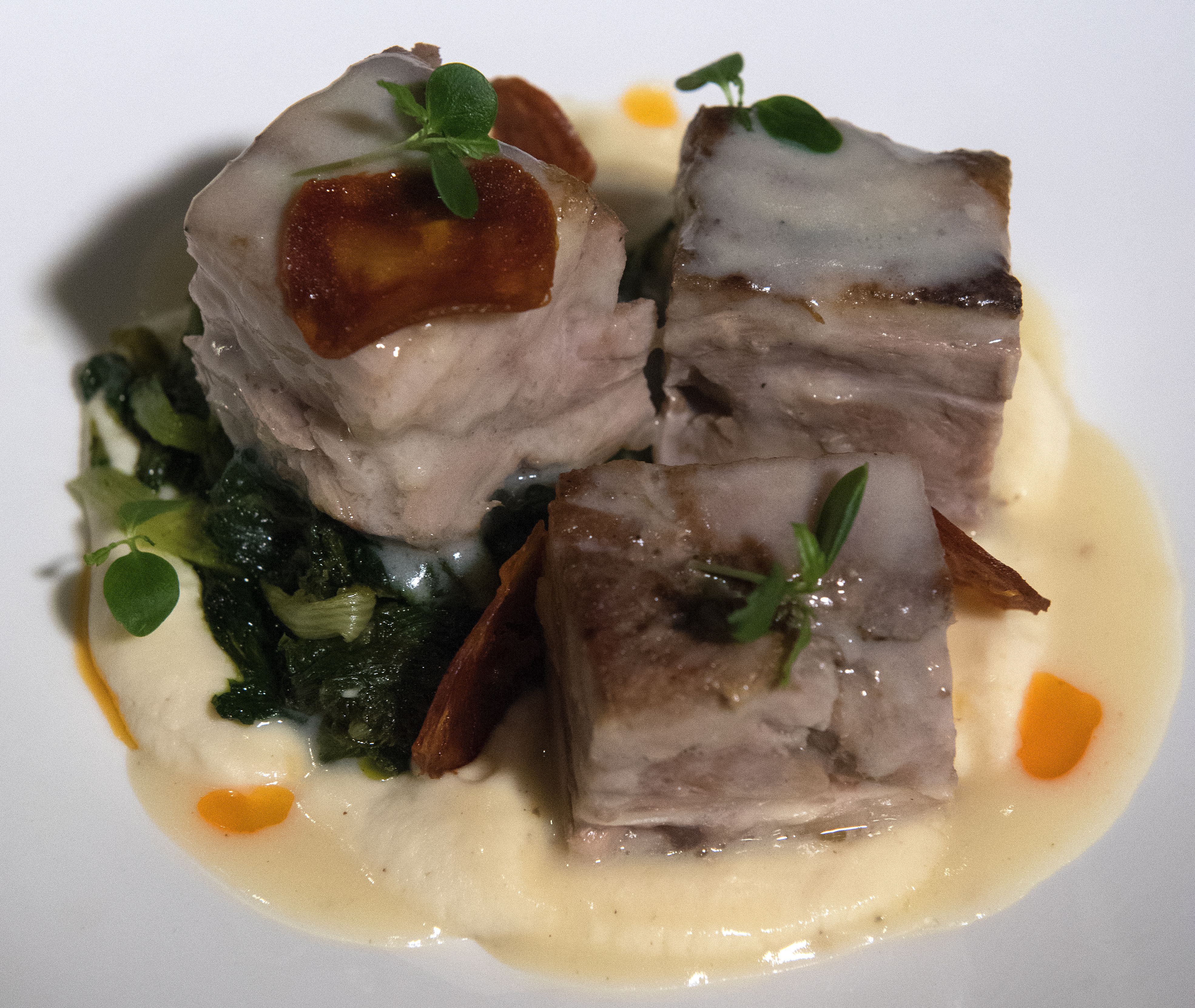 Σερβίρουμε το αρνάκι με κρέμα παστινάκι (ή σελινόριζα), χόρτα και περιχύνουμε με αβγολέμονο.
