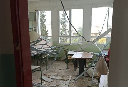 Η γυψοσανίδα με τη μόνωση και τον αλουμινένιο σκελετό είχαν τοποθετηθεί πρόσφατα στο συγκεκριμένο τμήμα από ιδιωτικό συνεργείο, που έδωσε στη συνέχεια το πράσινο φως στη διεύθυνση του σχολείου για να ξεκινήσουν τα μαθήματα.