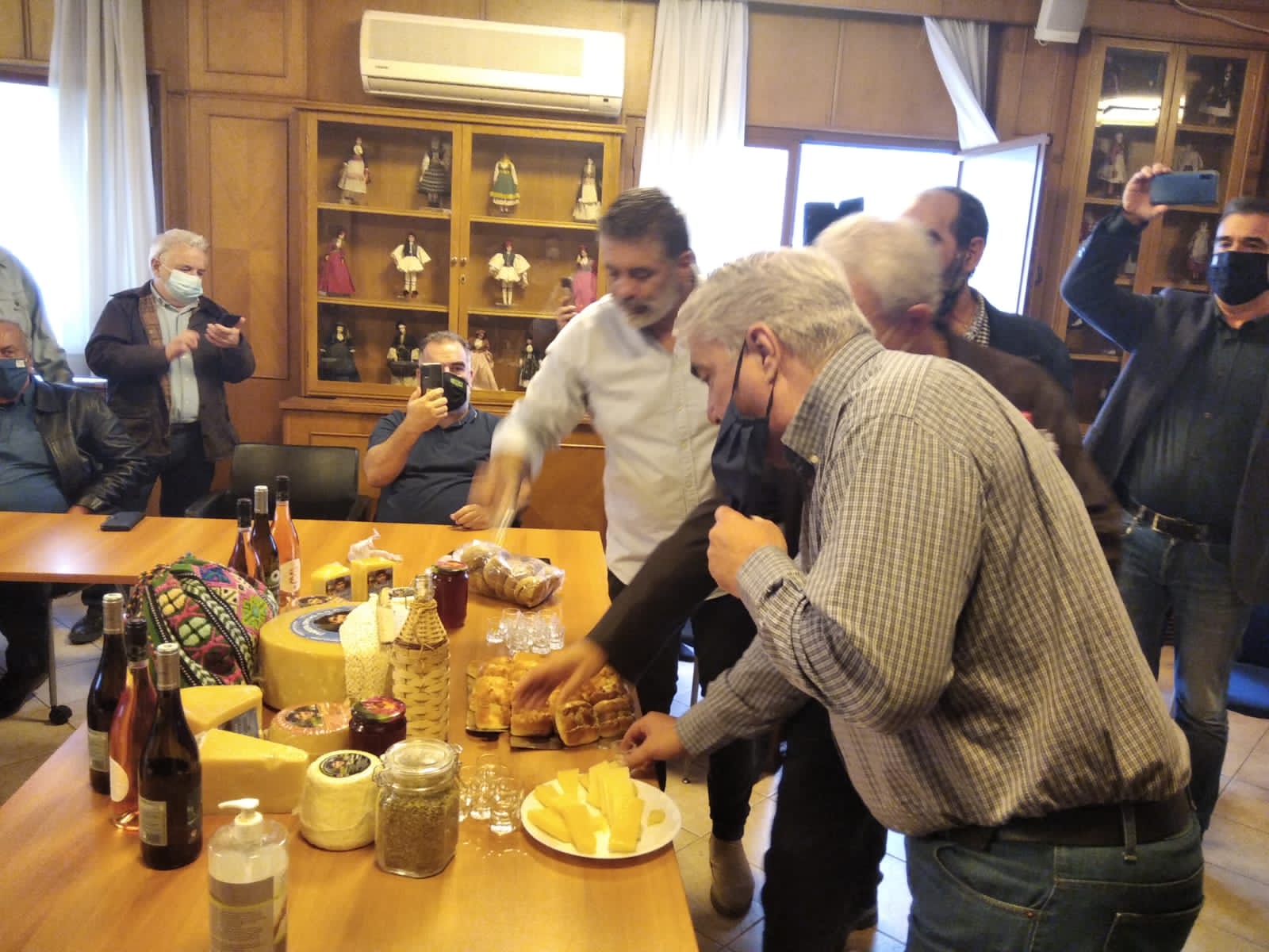 Καλούδια από τον τόπο τους προσέφεραν οι Κρητικοί στον υφυπουργό Αγροτικής Ανάπτυξης Σίμο Κεδίκογλου λίγο πριν από τη χθεσινή τους συνάντηση. Συγκεκριμένα στο τραπέζι μπήκαν τα «κεφάλια» της γραβιέρας, το ανθότυρο, η ρίγανη, τα παξιμάδια, οι ελιές, τα καλτσούνια, τα κρασιά και φυσικά η φρέσκια τσικουδιά από καζάνια που άνοιξαν τις τελευταίες μέρες.