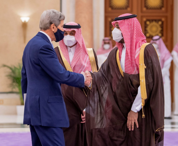 Επίσης σε μια κίνηση με ισχυρό συμβολισμό, ο Τζον Κέρι, ο ειδικός απεσταλμένος των ΗΠΑ για το κλίμα, δεν παρέλειψε να χαιρετίσει τον Πρίγκιπα Μοχάμεντ καθώς ήταν ένας εκ των προσκεκλημένων στην ανακοίνωση από τον διάδοχο πρίγκιπα της «Πράσινης Πρωτοβουλίας για τη Μέση Ανατολή».