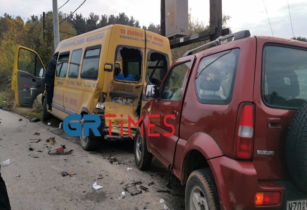 Όπως αναφέρουν οι πρώτες πληροφορίες τζιπ χτύπησε το σχολικό λεωφορείο που προπορευόταν, με αποτέλεσμα το σχολικό να βγει έξω από το δρόμο και να συγκρουστεί με κολόνα.