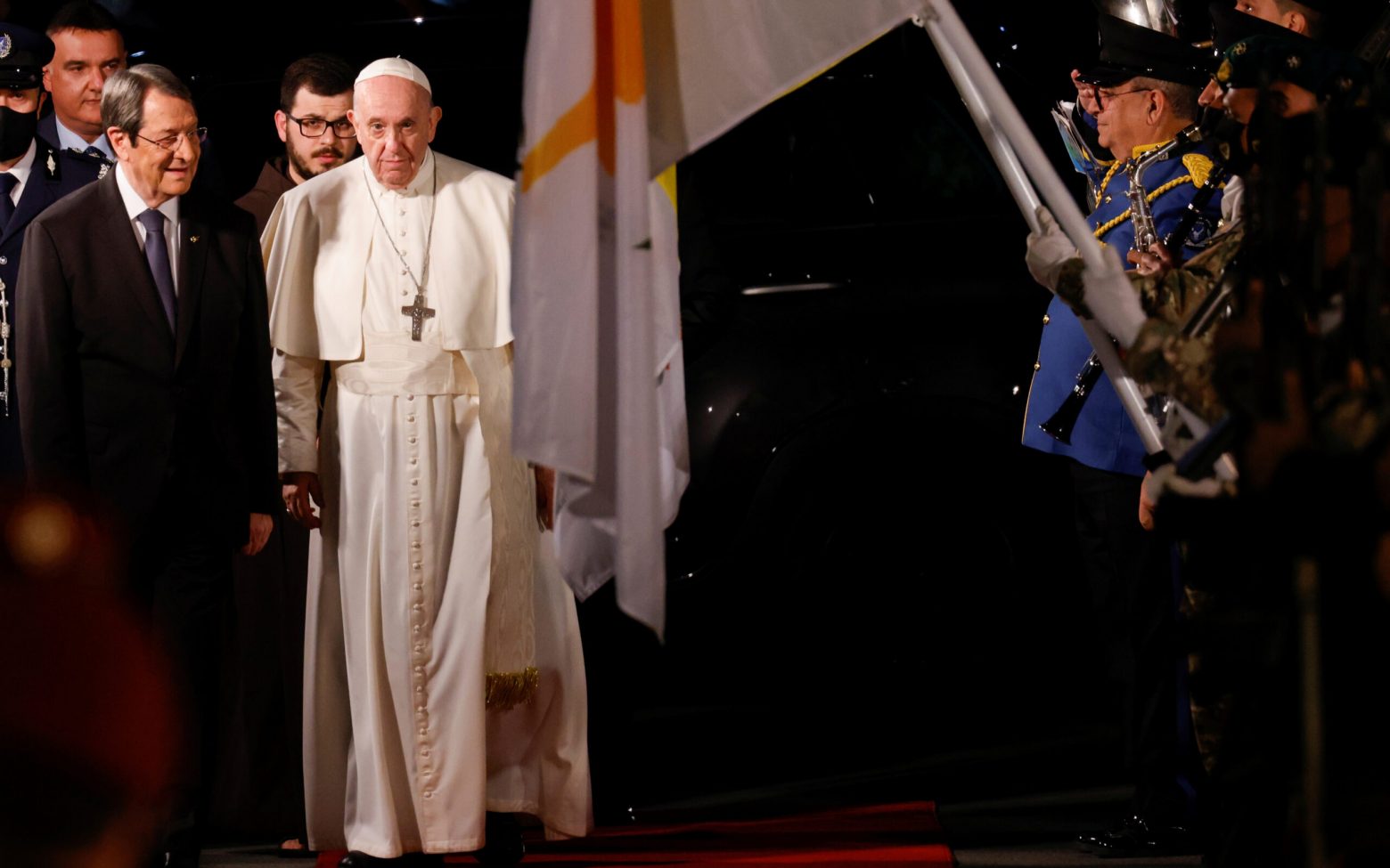 Κατά τη διάρκεια της ομιλίας του στο Προεδρικό Μέγαρο στη Λευκωσία, ο Ποντίφικας παρομοίωσε την Κύπρο με «ένα μαργαριτάρι μεγάλης αξίας στην καρδιά της Μεσογείου».