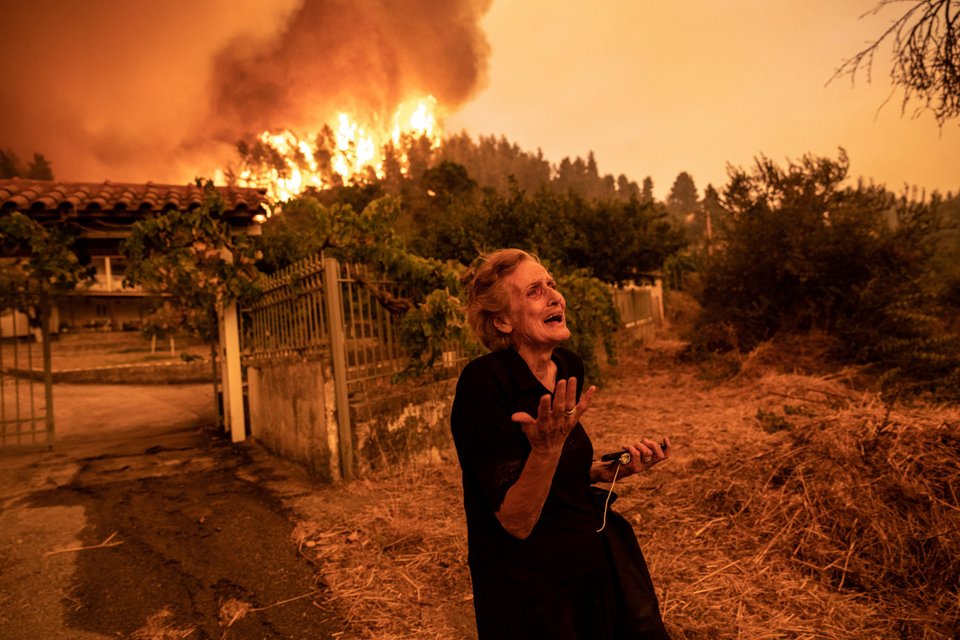 Η γυναίκα που έγινε εξώφυλλο στα μεγαλύτερα ΜΜΕ του πλανήτη, ενώ εγκατέλειπε το σπίτι της στις καταστροφικές φωτιές του καλοκαιριού στην Εύβοια, η κα Παναγιώτα δηλώνει χαρούμενη που δεν χάθηκε ούτε μια ανθρώπινη ζωή.