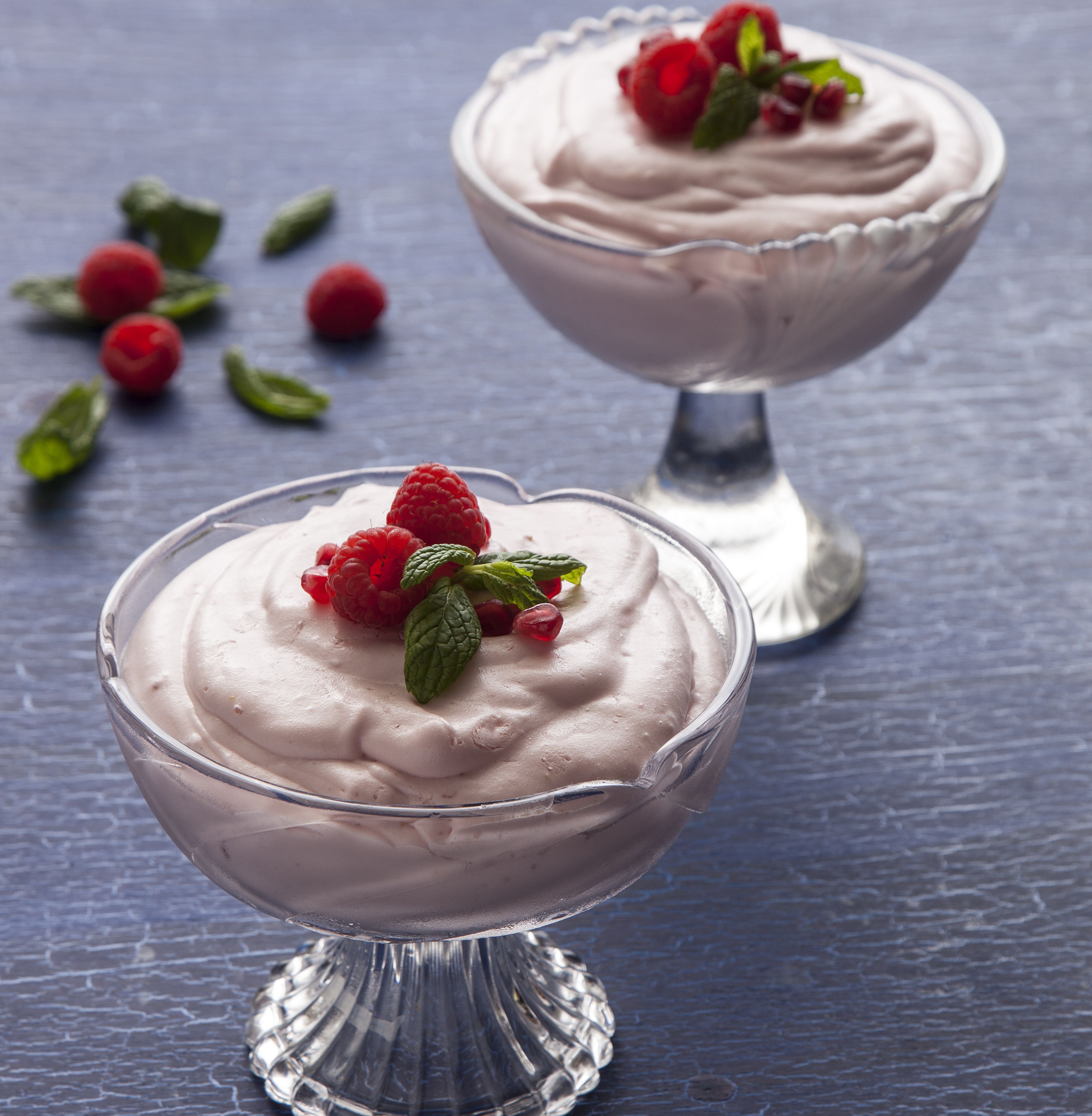 Επιπλέον φρέσκο ρόδι καθαρισμένο, φρέσκα φραμπουάζ και φύλλα δυόσμου για το γαρνίρισμα