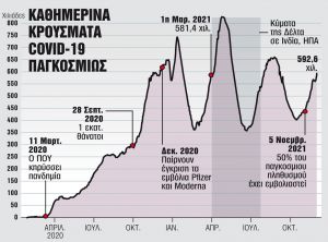 To τίμημα, δε, θα είναι ιδιαίτερα θλιβερό κυρίως για εκείνες τις γεωγραφικές περιοχές όπου η εμβολιαστική κάλυψη παραμένει αναιμική έναντι του απειλητικού πανδημικού ιού. Οπως προκύπτει από έρευνα του Πανεπιστημίου Κρήτης, από την αρχή της πανδημίας στηνΚεντρική Μακεδονίαέχουν καταγραφεί περίπου2.900 θάνατοιανά ένα εκατομμύριο πληθυσμού.Αντιθέτως, στην πυκνοκατοικημένη Αθήνα, όπου οι συνθήκες ευνοούν τις μεταδόσεις, οι θάνατοι ανά εκατομμύριο κατοίκους είναι οι μισοί (1.450) σε σχέση με τη Βόρεια Ελλάδα, γεγονός που σχετίζεται με τη μαζικότερη ανταπόκριση των κατοίκων της πρωτεύουσας στο κάλεσμα των επιστημόνων.