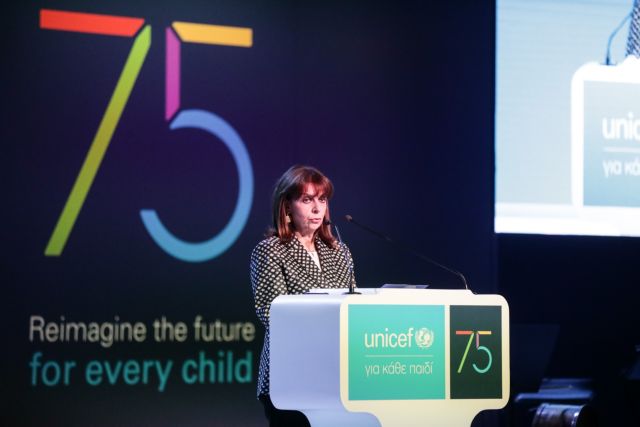 H Πρόεδρος της Δημοκρατίας, Κατερίνα Σακελλαροπούλου, απηύθυνε απόψε χαιρετισμό στην επετειακή εκδήλωση της Unicef για τα 75 έτη Συνεργασίας για την Υπεράσπιση των Δικαιωμάτων του Παιδιού στην Ελλάδα και τον Κόσμο, που πραγματοποιήθηκε στο Ζάππειο Μέγαρο.