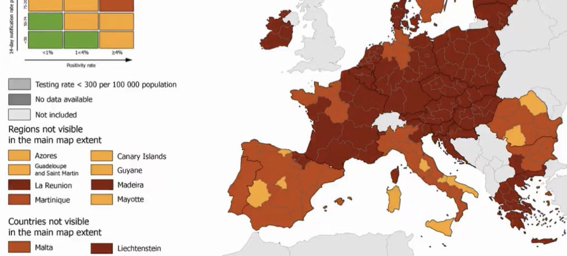 Μόνο ελάχιστες χώρες όπως η Ισπανία, η οποία βέβαια παρουσιάζει και εξαιρετικά ποσοστά εμβολιασμού κατάφεραν να διατηρήσουν την επιδημιολογική τους κατάσταση και να μην αλλάξουν κατηγορία.