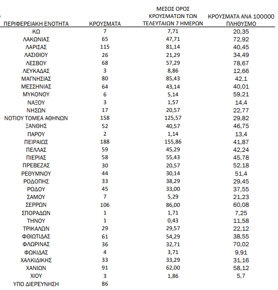 Τέλος, 86 κρούσματα βρίσκονται υπό διερεύνηση.